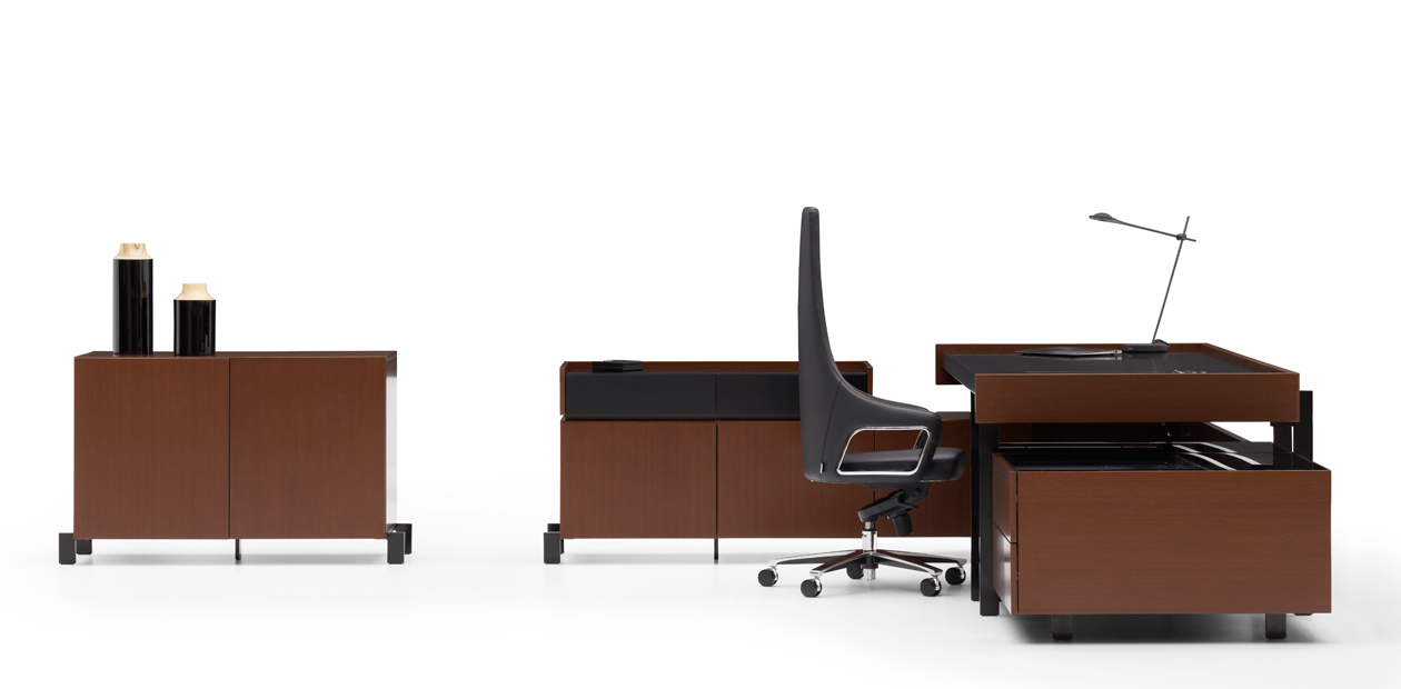 Ana üniteye entegre olabilen dolap, çekmece, vitrin gibi tamamlayıcılarla farklılaşabilen özel seri yönetici masası Theo, yalın formlar üzerine kurgulanmış detayları ve eklektik yapısıyla bulunduğu ortama şıklık katar. Koleksiyonerlere de hitap etmek için tasarlanan Theo, bu yönünü opsiyonel tepsilerde ve masa yanında, çekmece ya da dolapların üzerinde kullanılan vitrinlerde de gösterir. Bu üniteler, kullanıcının kendini ifade ettiği alanlarıdır. Ünitelerdeki cam paneller kullanıcısına değer verdiği eşyaları sergileme olanağı sağlar.